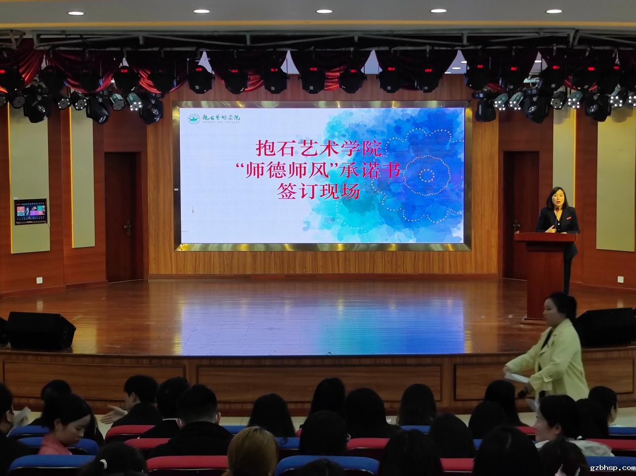 为贯彻落实全国教育大会精神和《新时代高校教师职业行为十项准则》,落实立德树人根本任务,加强我院师德师风建设,提高教师职业道德素养,规范教育教学行为,3月27日下午,我院在文科楼4楼演艺厅召抱石艺术学院召开“师德师风”承诺书签订现场,会议由院长余旭主持,以及全体教师参加了会议。