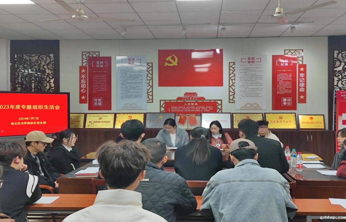 1月17日,抱石艺术学院学生党支部在艺术楼202党员活动室召开2023年度专题组织生活会和民主评议党员会,聚焦“学思想、强党性、重实践、建新功”总要求,对照主题教育具体目标,检视差距、剖析不足,着力从思想根源上解决问题,奋力谱写抱石艺术学院发展新篇章。党支部全体党员参加会议,会议由党支部书记叶丽主持。