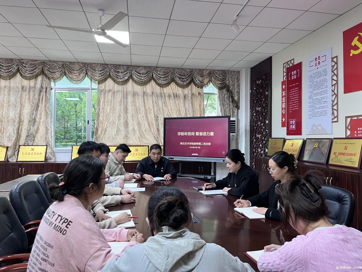 新年前夕,习近平主席通过中央广播电视总台和互联网,发表了二〇二四年新年贺词。2024年1月10日15:00,抱石艺术学院教师第二党支部在艺术楼202会议室召开主题党日活动,集中学习了习近平主席二〇二四年新年贺词。
