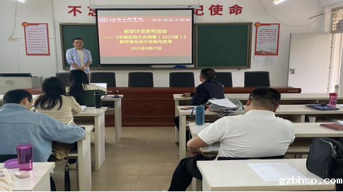 5.为了加强思政教师对新版教材的理解,掌握新教材的教学要求,提高教师驾驭新教材的能力,提高课堂教学质量,进一步深化课程改革,学院安排杨志光等六位老师外出培训,参加了《思想道德与法治》《中国近现代史纲要》《习近平新时代中国特色社会主义思想概论》三门课程2023年版教学单元设计培训。会后,杨志光等三名老师在学院教研室活动中分享了培训成果。