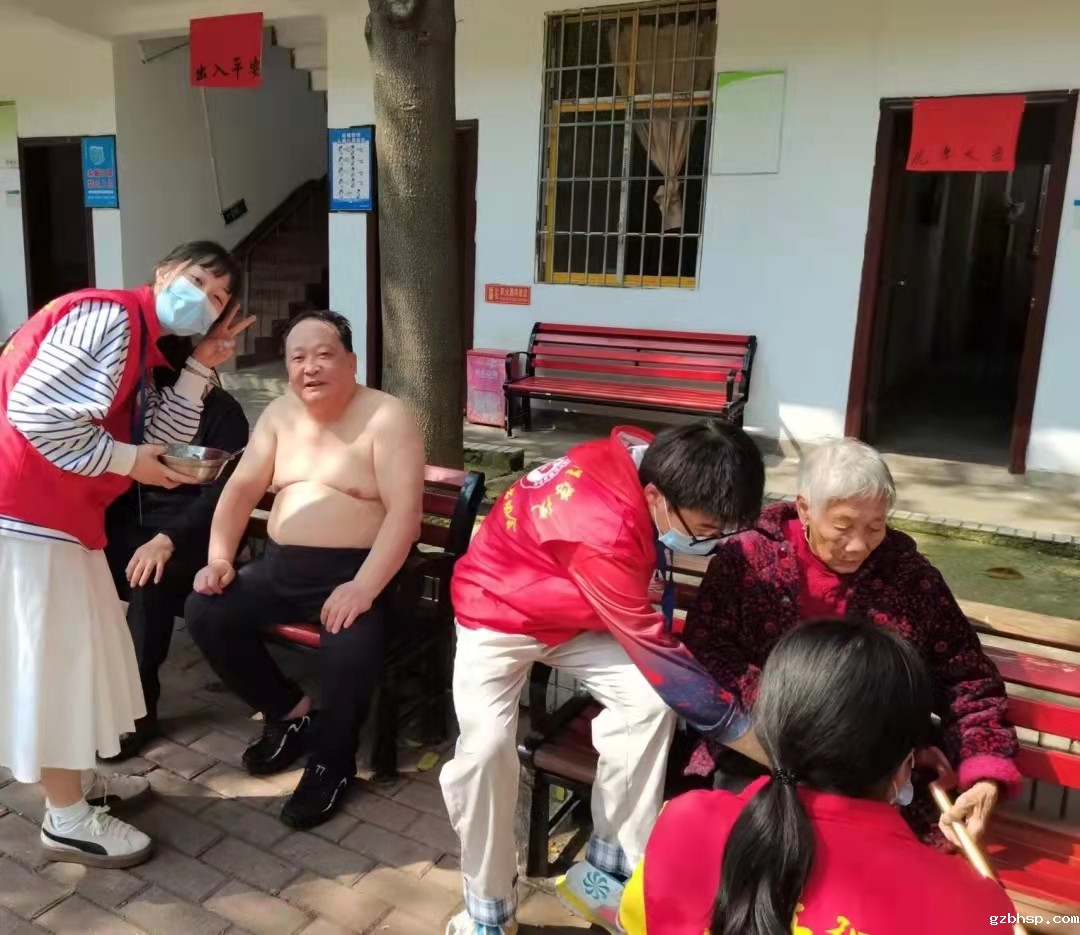 志愿者们排成队,井然有序地走进敬老院。活动伊始,志愿者们积极清理庭院落叶和清洗新鲜的水果,希望给老人们营造一个更加清新、干净、温馨的生活环境。一切准备就绪后将老人们从房间搀扶出来,在与老人们聊天的过程中,志愿者们了解到老人的日常生活情况,也静静聆听他们讲述自己丰富的人生经历和社会经验。