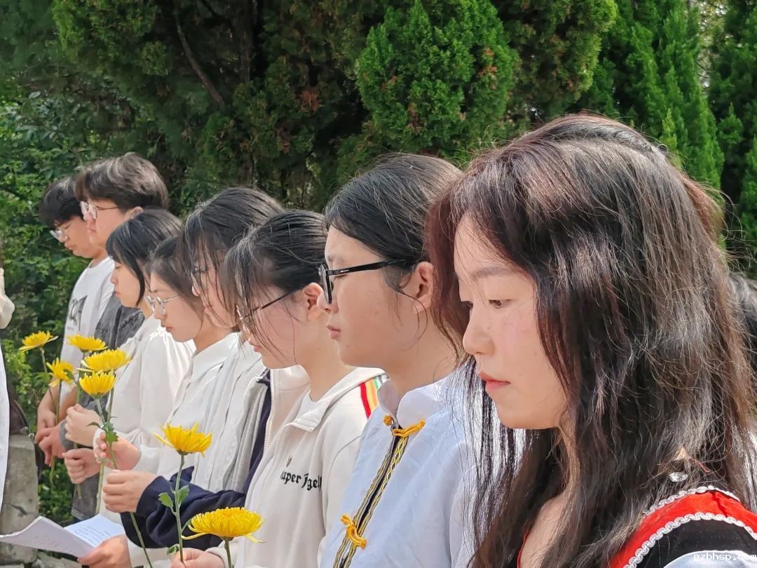 4月2日上午八点,在巍然屹立的革命烈士纪念碑前,全体人员整队肃立,“革命烈士永垂不朽”几个字在阳光的照射下熠熠生辉。清风拂过,仿佛革命先辈们在那段血雨腥风的岁月中发出的呐喊声还在耳畔回响。大家手持鲜花,低头默哀三分钟,向革命先烈们致以最崇高的敬意。