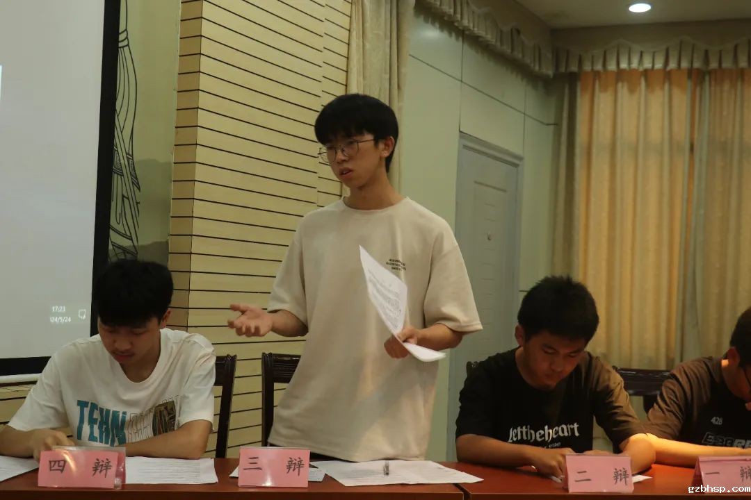 本次辩题具有多样性,如“面对精神内耗,我们更应该接纳/鞭策自己”“读大学,进步最大的是知识/是人格”“短视频对于年轻人精神生活而言利大/弊大”等。比赛伊始,辩手们展示了个人视角下的独特见解,搭配经典词条,让枯燥的理论迅速鲜活。伴随着计时器嘀嗒嘀嗒的时间流逝,笔尖在稿纸上磨得飞快,灵感在脑海中跳跃,紧接着,攻、守、辩,一气呵成。
